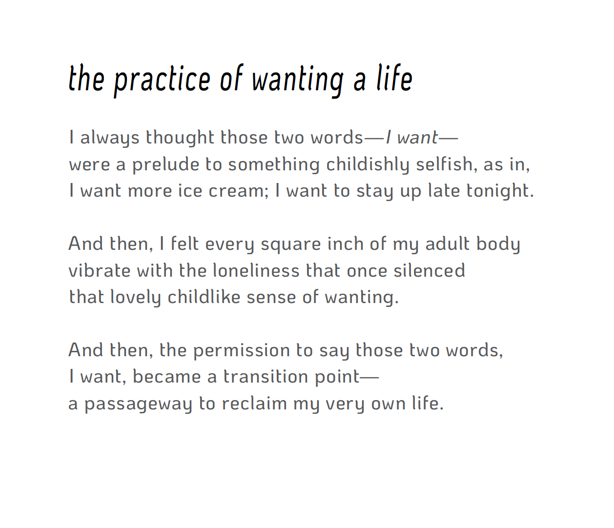 Selected Poems Order Dissociative Effect Poetry published in journals: Entering the Belly of the Whale — Wisconsin Fellowship of Poets, April 2025(included in Dissociative Effect) The Peach Stand — Wisconsin Fellowship of Poets, October 2023 (included in Dissociative Effect) Overdue EPIC Health Maintenance — Intima: A Journal of Narrative Medicine, Spring 2022 With Gadolinium Enhancement — Intima: A Journal of Narrative Medicine, Spring 2023 Articles: Vulnerable Healthcare Workers — Pulse: Voices from the heart of medicine, 2023 Positive Puberty — WXOW.com article about a McIntosh Memorial Library course taught by Dr. Jackie Redmer, 2025 The Lost Patient Narrative in Our Era of “EHR-Centered” Medicine: A Reflection — Intima: A Journal of Modern Medicine, 2022 Navigating Feminism in Medicine — MEDPAGE TODAY’s KevinMD.com, 2023 Lessons from Employer Mandated COVID Leave — MEDPAGE TODAY’s KevinMD.com, 2022